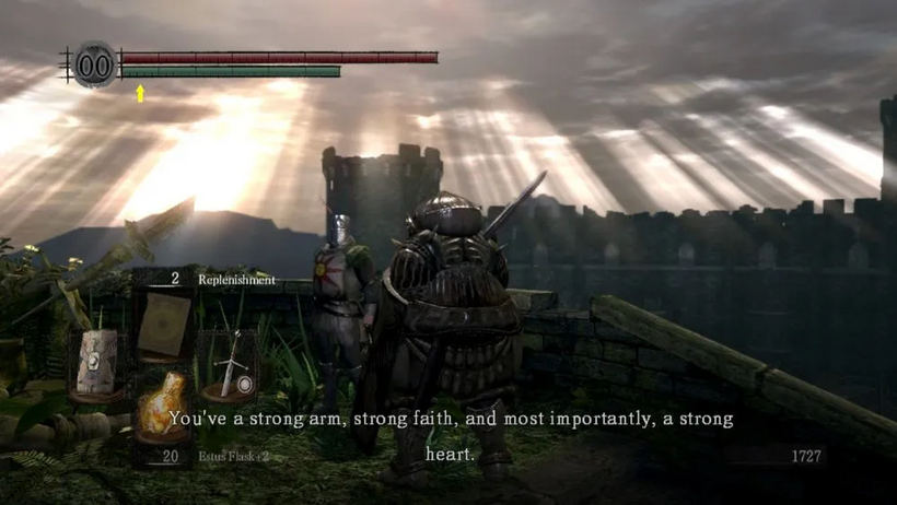 My willingness to forgo a pure mace and shield run to try the claymore, falling in love with it, and ultimately using it in my winning fight against Gwyn is a character arc. This all upheld my original goals, but was a richer and deeper experience than if I had stuck to the exact same playstyle for all of Dark Souls 1!